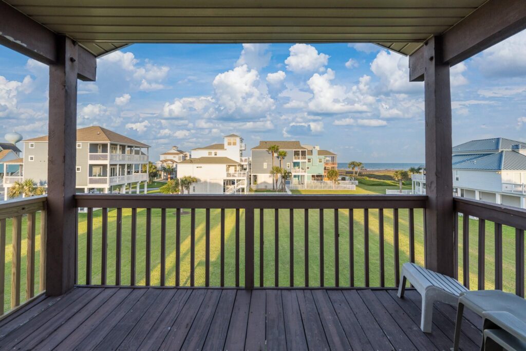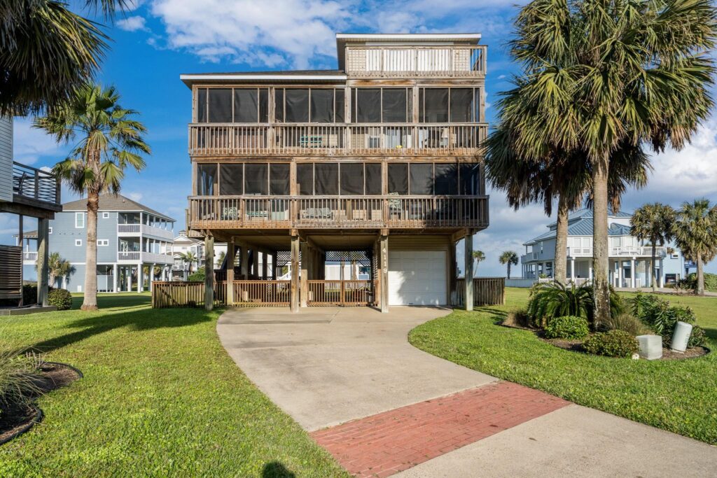 Featuring 4–5 bedrooms, 3 full baths, storm doors, & expansive outdoor living w/ multiple balconies, ground level patio, outdoor shower, sprinkler system, hot tub, & panoramic views of both the ocean & the bay.